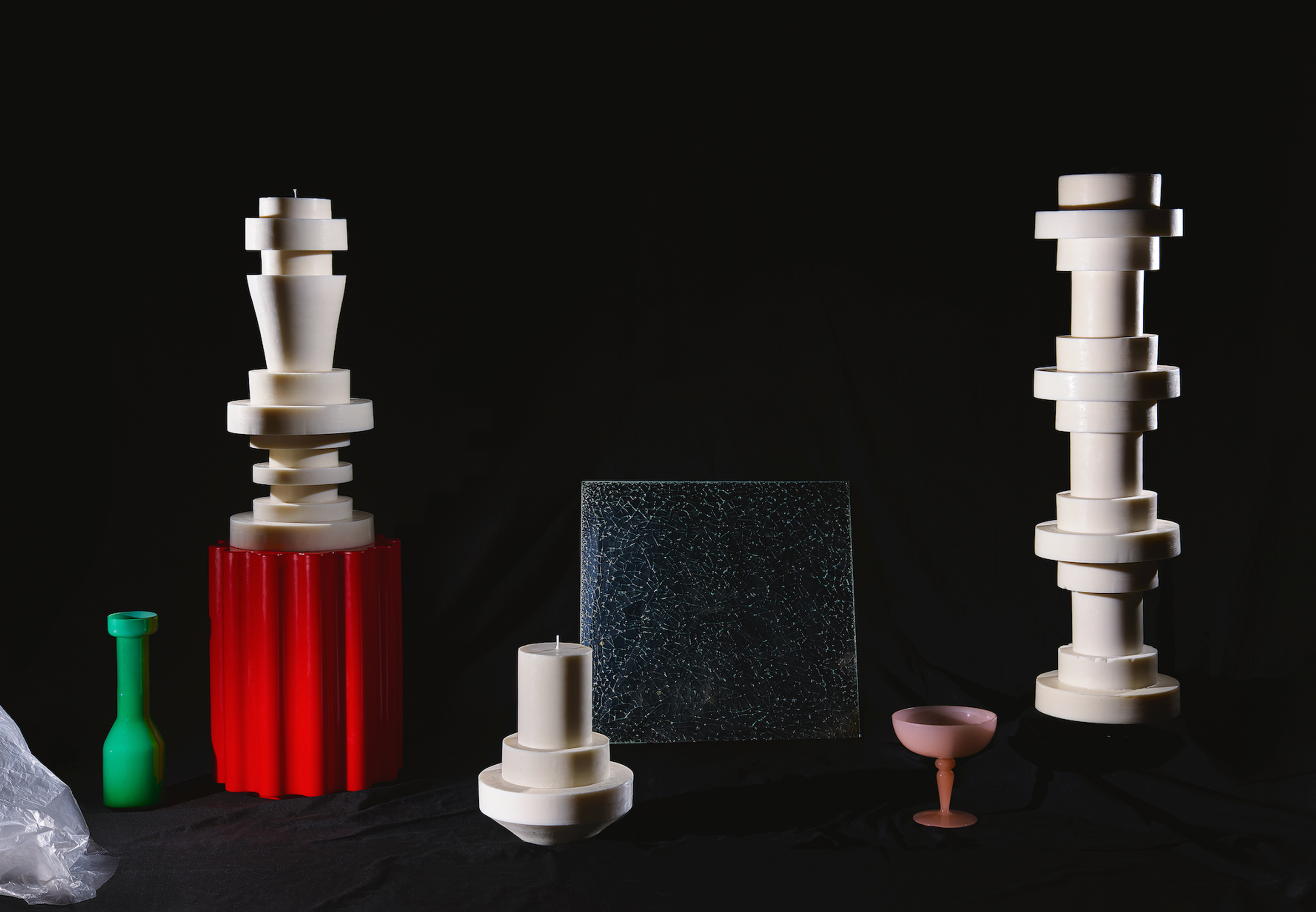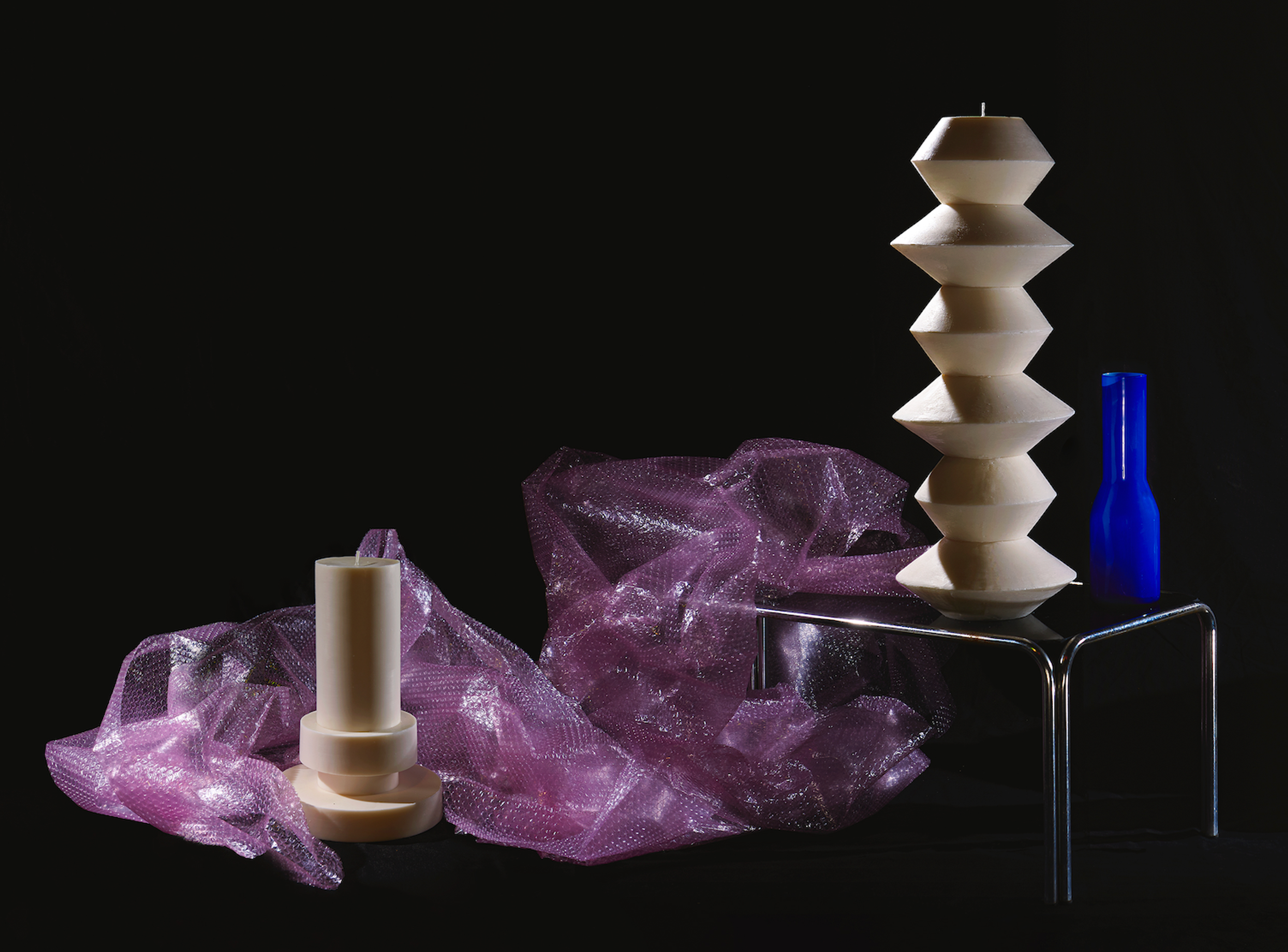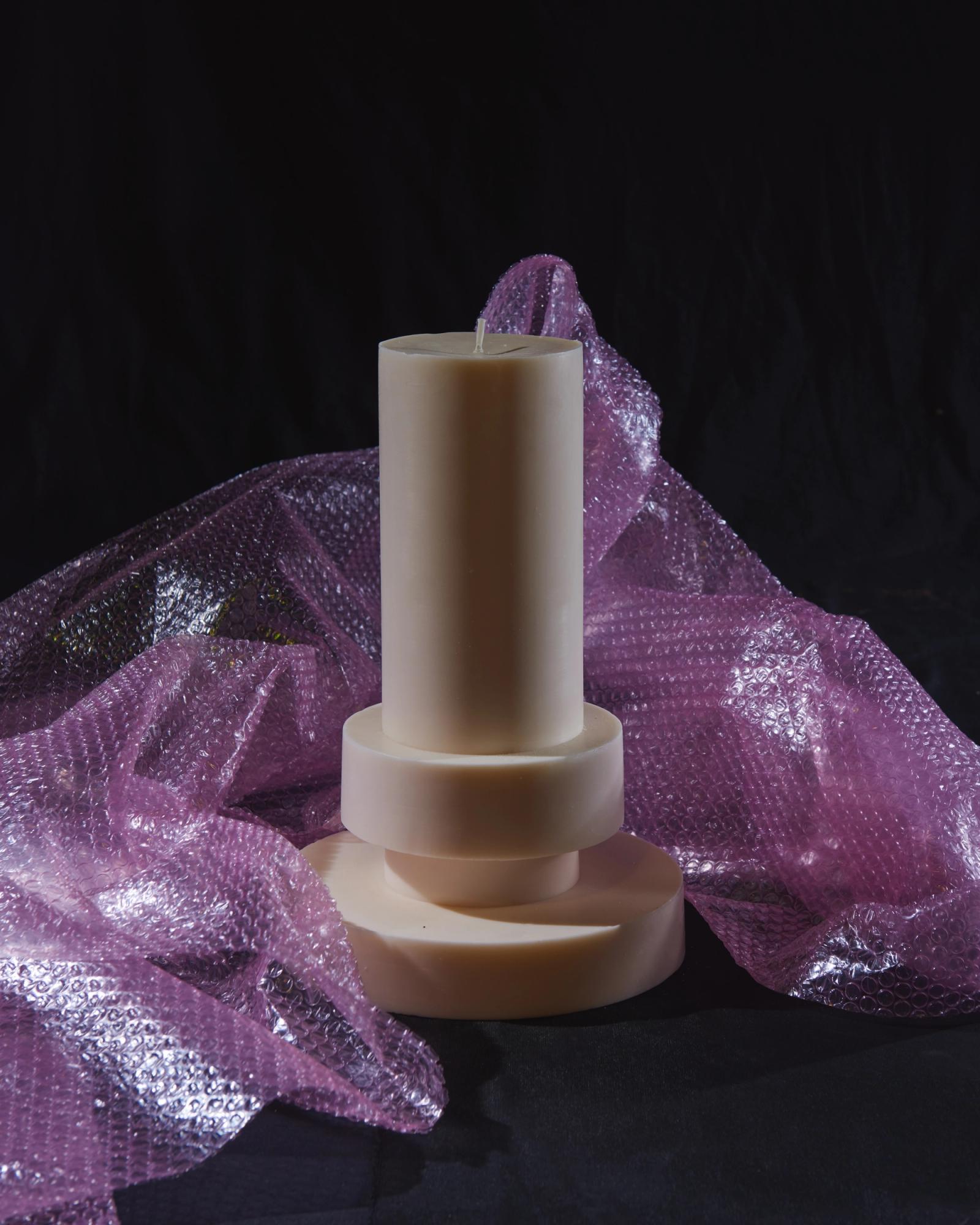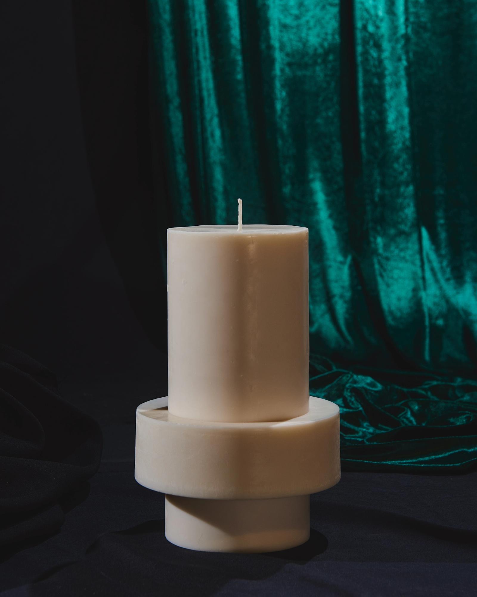 In her atelier, she has created a unique and almost ritual process to orchestrate the forms of her totemic candles. Each geometric element is molded separately before coming together into one sculpture. At the center, a thick candle wick acts as a backbone for the structure whilst four other hidden wicks extend the skeleton of the Very Big candle. These four secondary wicks will only come to light when the candle has already burned for a few hours, renewing the fascination with other forms and shadows.